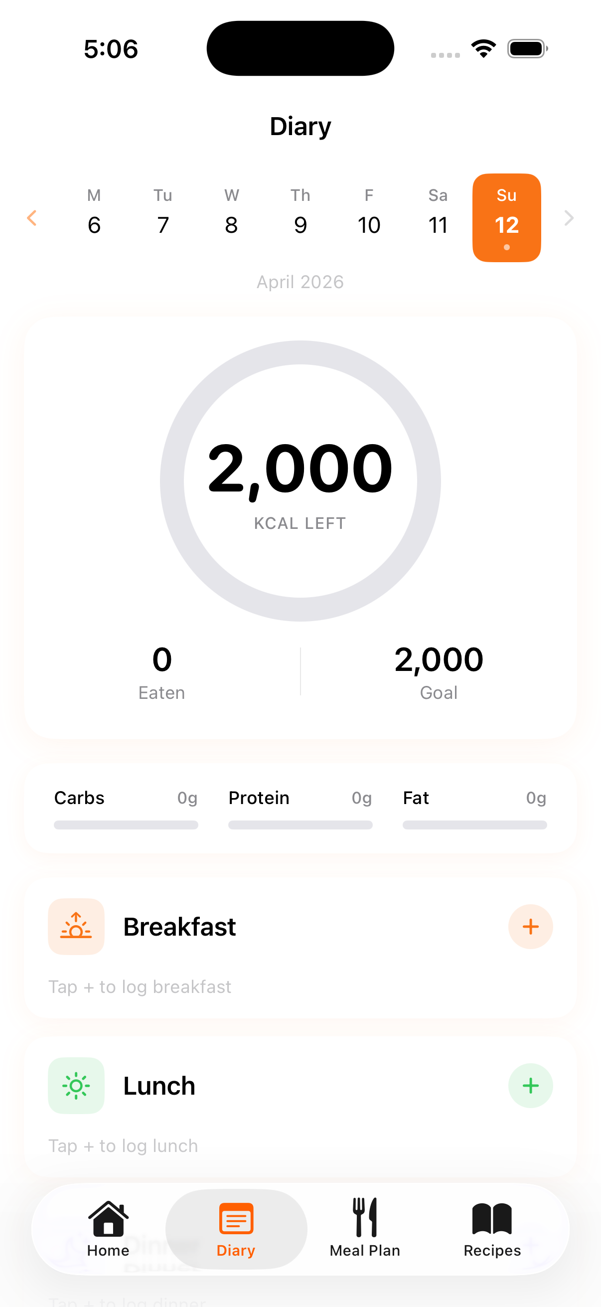 Log breakfast, lunch, dinner, and snacks. Real-time breakdown as you go.
