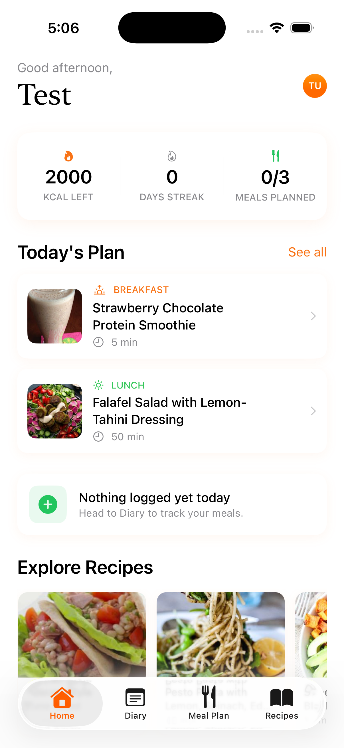Log meals with barcode scanning, complete workouts, and build healthy streaks.
